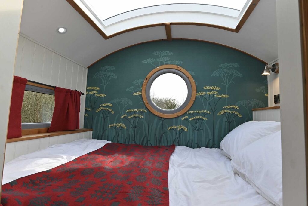 Sleeping two adults and up to two children, the accommodation is ideal for family breaks or romantic getaways. Inside, you’ll find a luxurious king-size bed plus optional cosy bunk beds for little ones. Warmth is guaranteed whatever the season, with electric heating and a traditional log burner creating a snug, inviting atmosphere. The ensuite bathroom includes a shower and modern eco toilet, while the mini kitchen is fully equipped with an under-counter fridge, microwave, double hob, kettle and toaster, making self-catering simple.